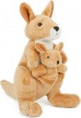 Zoznámte sa s týmto roztomilým plyšovým klokanom, ktorý so sebou nosí svoje malé mláďa vo vrecúšku, rovnako ako to robia klokany v skutočnosti.