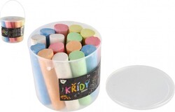Balenie farebných kried v praktickom vedierku. Obsahuje 15ks chodníkových kried. Vhodné na maľovanie na tabuľu, drevo, ale aj na asfalt.