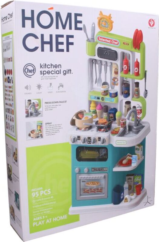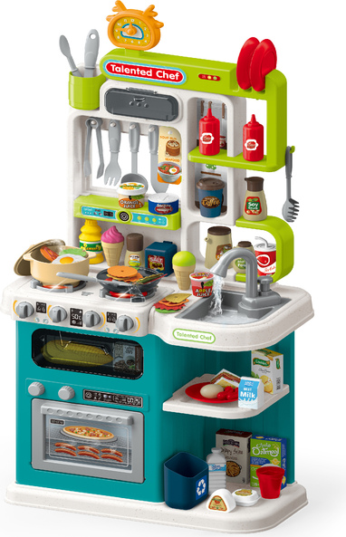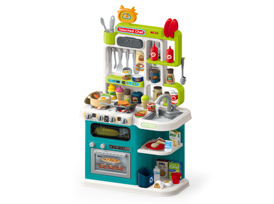 Balenie obsahuje bohaté príslušenstvo do kuchyne-riad a potraviny. Drez je možné naplniť vodou a po stlačení páčky na vodovodnom kohútiky z neho strieka voda. Po naliatí vody do variča vychádza para. Svetelné a zvukové efekty.