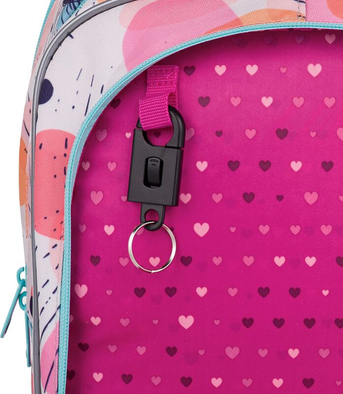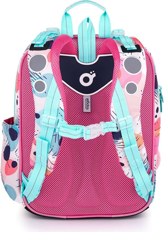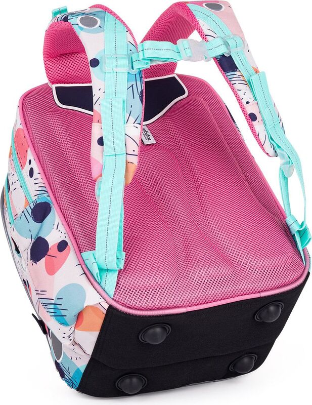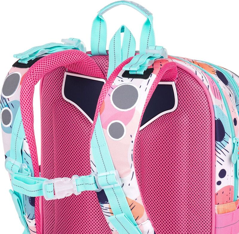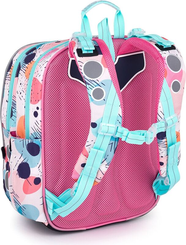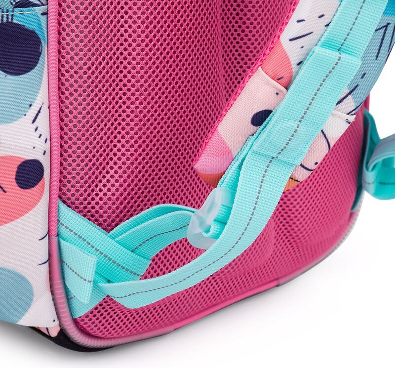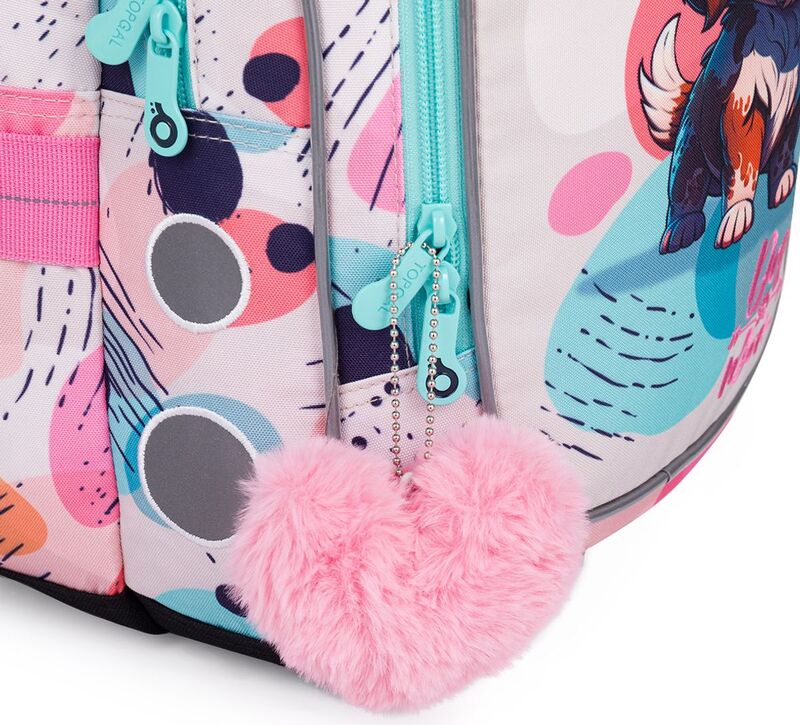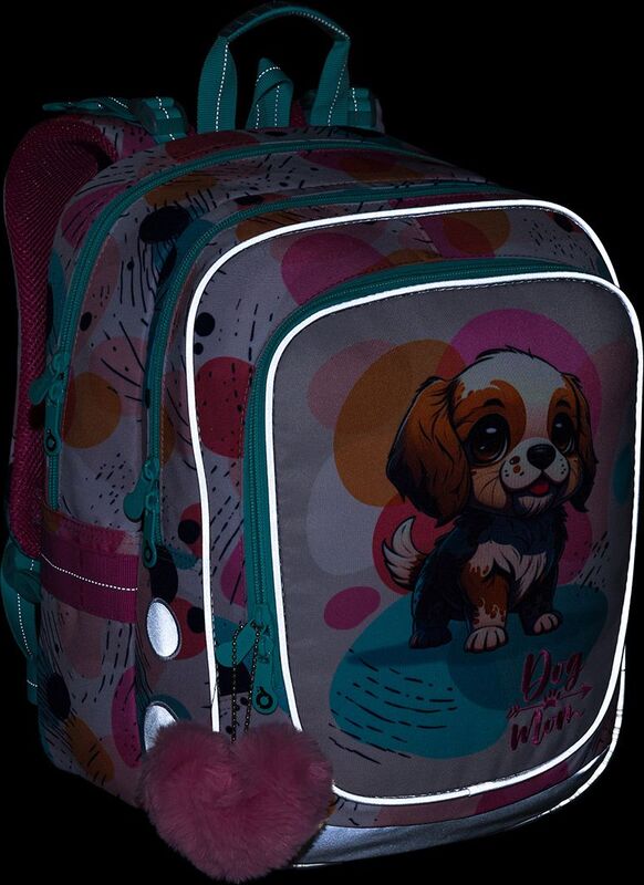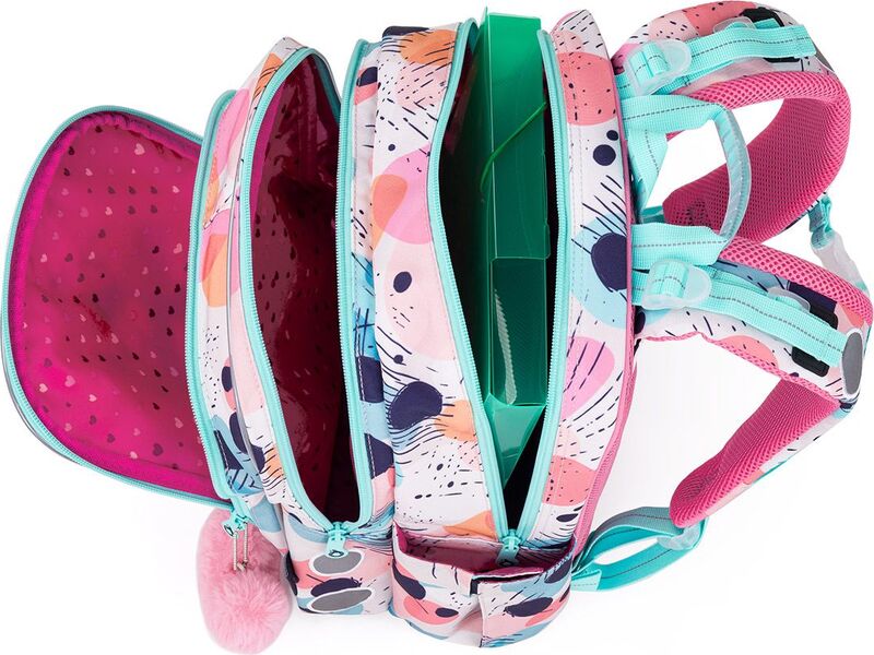 Batoh má dve objemné hlavné komory. Do najširšej zadnej komory odporúčame dať najťažšie učebnice alebo dosky na zošity. Predná komora je o niečo užšia a je v nej umiestnené malé sieťové vrecko na zips a menovka.