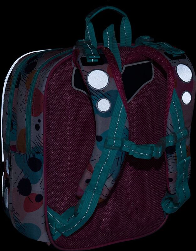 • reflexné prvky: na čele a bokoch batohu, na ramenných popruhoch