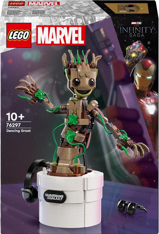 Stavebnica LEGO® Marvel Tancujúci Groot (76297) zo sveta Strážcov galaxie má interaktívnu tanečnú funkciu. Ide o skvelý darček pre deti od 10 rokov, fanúšikov marvelovskej postavičky Groota, superhrdinov a zostaviteľných hračiek LEGO.