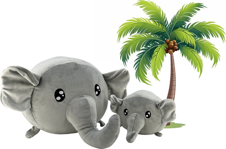 Rozkošné mláďa slona so svojou milujúcou mamičkou. Set dvoch vyšívaných tematických plyšových hračiek z veľmi kvalitnej mäkkej plyše, vhodné pre všetky vekové skupiny.