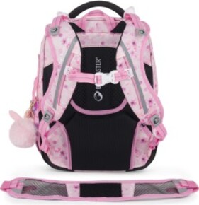 - Ramenné popruhy a chrbtový systém sú mäkko polstrované. Popruhy sú nastaviteľné pomocou hornej a dolnej plastovej pracky. Dĺžku je potrebné upravovať podľa toho, ako školáčka rastie. Konce popruhov sú magnetické. Aby sa nezosúvali, stačí ich pomocou magnetu pripnúť na plastovú pracku.