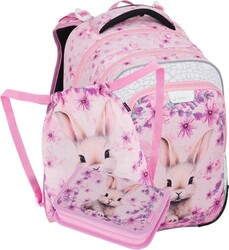 Kto by odolal batohu s králikom? Ľahký batoh s trojkomorovým usporiadaním pre učebnice a zošity, ergonomicky tvarovaným chrbtovým systémom pre pohodlné nosenie a reflexnými prvkami – ideálny parťák pre školáčky od prvej do tretej triedy. Súpravu pre malú princeznú dopĺňa peračník a látková taška.