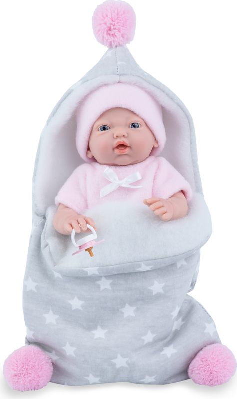 Ručne vyrobená voňajúca španielska bábika s celovinylovým telom a realistickým vyobrazením bábätkovských faldíkov vrátane pohlavia.
