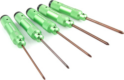Sada kvalitných CNC krížových skrutkovačov Phillips Medial Pro o veľkosti 3.0 (#0), 3.5, 4.0 (#1), 5.0 (#2) a 5.8 mm má hliníkovú rukoväť s priemerom 21 mm s gumovou opierkou a driek s dĺžkou 83 mm. Atraktívne balenie v plastovej krabičke.