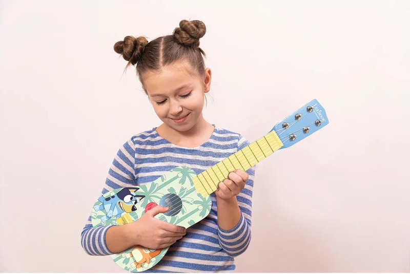 Táto malá gitara je ideálna pre začínajúcich gitaristov, ktorí chcú urobiť prvé kroky v hudbe! Vyrobená z dreva pre vynikajúcu kvalitu zvuku. Gitara sa dá ladiť (ladička nie je súčasťou balenia). Súčasťou balenia je aj návod, ktorý vám pomôže naučiť sa hrať. Úžasný modrý dizajn!