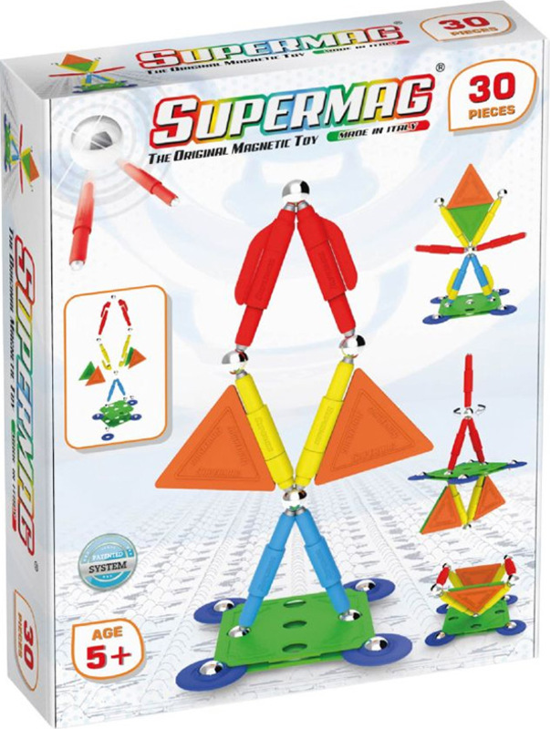 Supermag Multicolor je magnetická stavebnica s 30 dielmi, vhodná pre deti od 5 rokov. Obsahuje magnetické tyčinky, oceľové guličky a plastové komponenty, z ktorých sa dajú vytvárať nekonečné konštrukcie – jediným limitom je fantázia.