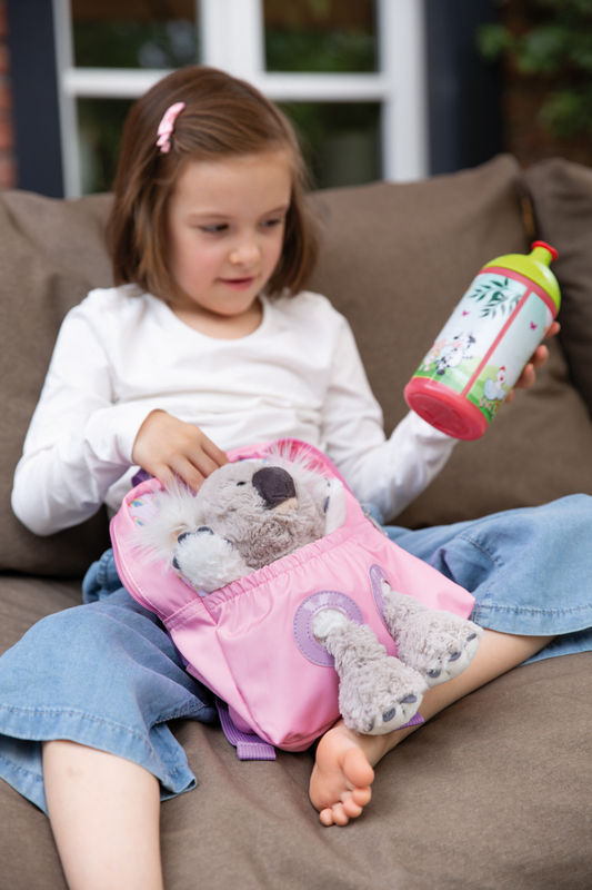Jedinečná koala z hebučkého mäkkého plyšu sedí bezpečne v samostatnom vrecku s gumičkou a s úsmevom sleduje svet z chrbta dieťaťa. 25 cm veľká plyšová hračka sa dá jednoducho vybrať – ideálna na hranie, maznanie aj na cestovanie. Polstrované a nastaviteľné ramenné popruhy spolu s mäkkou chrbtovou časťou v osvedčenej kvalite NICI zabezpečujú maximálny komfort pri nosení.