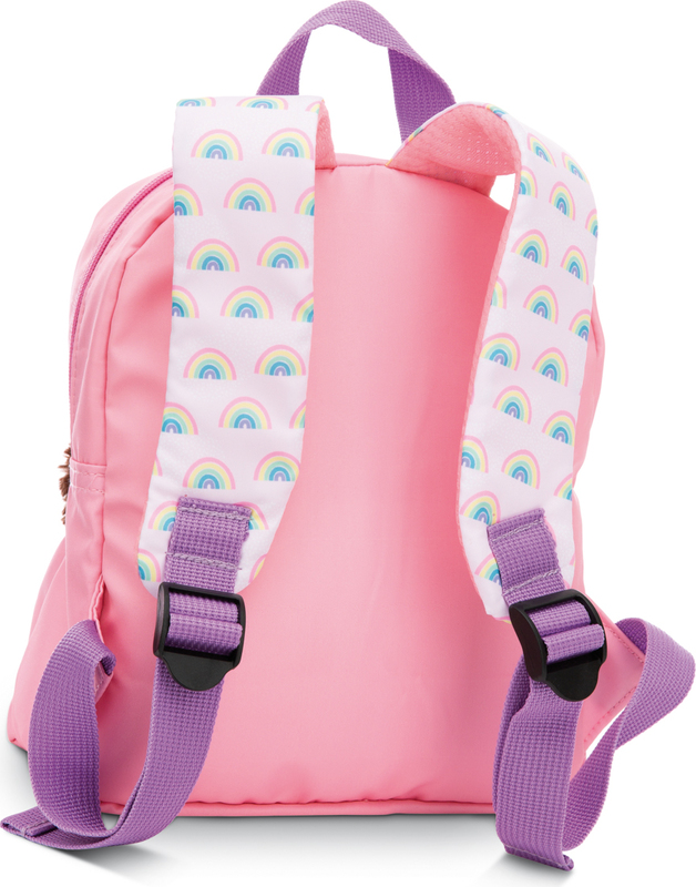 - Detský batoh v ružovom dizajne s motívom dúhy