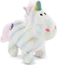 - Hriva a chvost v jemnom ružovom odtieni, lesklé strieborné uši, výraz tváre, ktorý nemôže byť roztomilejší, a detailná výšivka v tvare mesiaca na boku dodávajú tomuto jedinečnému plyšovému jednorožcovi veľmi zvláštny nádych.