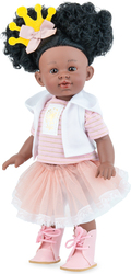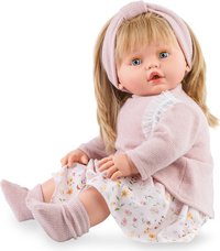Má mäkké látkové telo a vinylové končatiny. Je oblečená v roztomilom pletenom overale s kabátikom, čelenkou a zladenými ponožkami. Súčasťou je cumlík – hryzadlo.