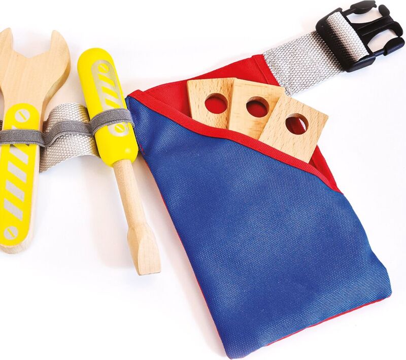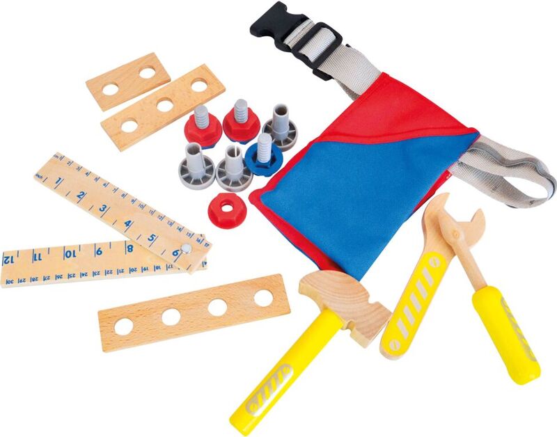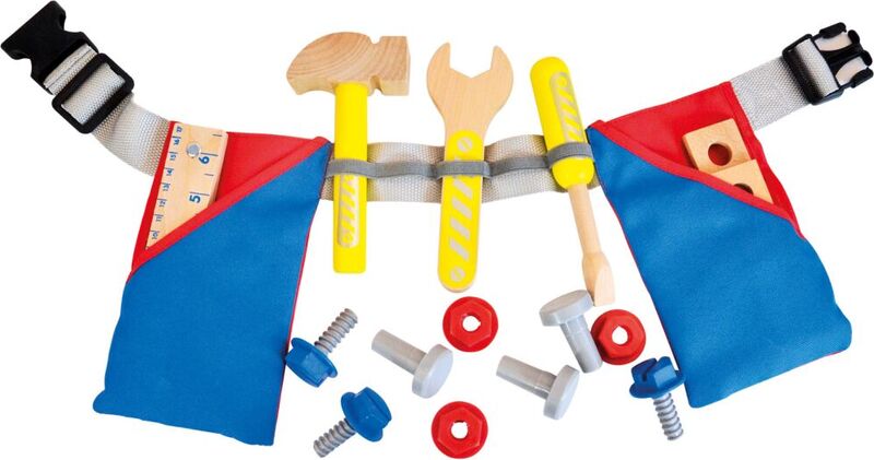 Detský opasok na náradie s nastaviteľnou dĺžkou obsahuje 17 dielov.