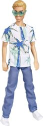 Panáčik Kevin v prázdninovom outfite. Oblečený v tričku s palmou a cool džínsoch so slnečnými okuliarmi.