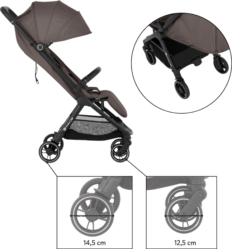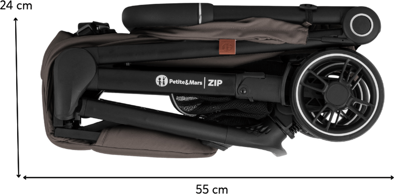 ZIP patrí medzi kočíky s kabínkovým rozmerom po zložení, takže ho môžete bez obáv vziať na palubu lietadla alebo uložiť do kufra aj menšieho auta. S hmotnosťou iba 7 kg ho bez problémov prenesiete v jednej ruke, pričom druhou môžete viesť dieťa.