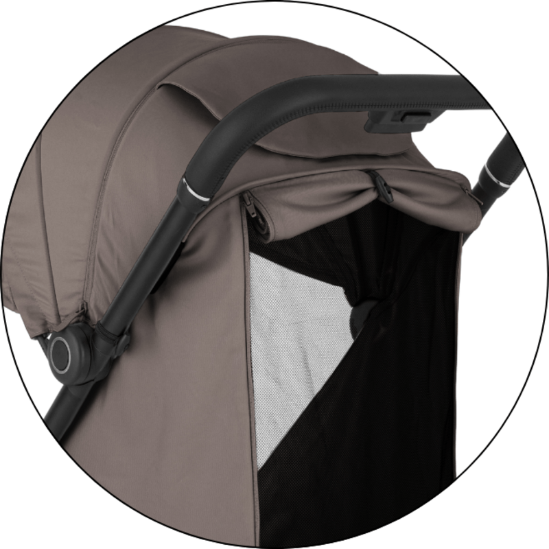 Rozšíriteľná strieška s integrovaným šiltom s ochranou UPF50+ chráni pred ostrým slnkom, zatiaľ čo rodičovské okienko s tichým magnetickým uzáverom umožňuje nenápadný dohľad bez rušenia dieťaťa.