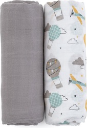 PETITE&MARS Prikrývka bambusová mušelínová 2ks Misty Grey Planes 2v1, 120 x 120 cm