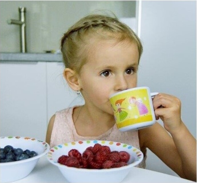 - 1x tanierik, 1x miska, 1x hrnček s uškom, 2 lyžičky,