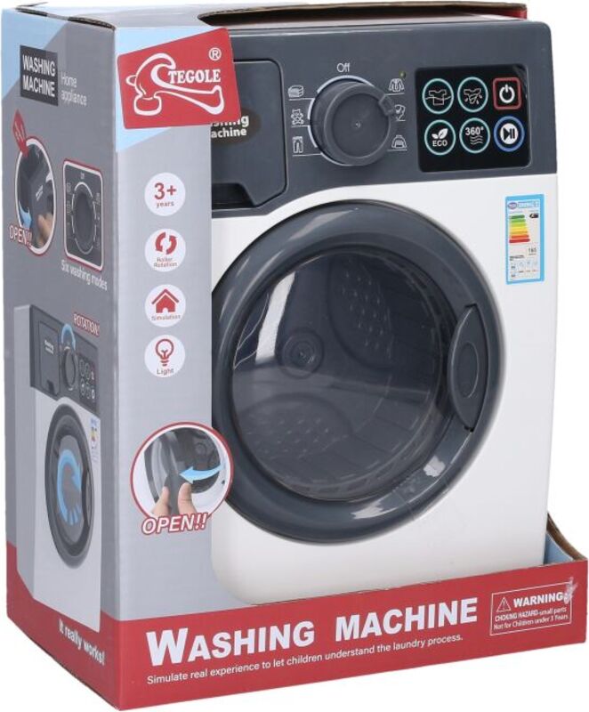 Realistická detská práčka, ktorá deťom umožní napodobňovať pranie ako v skutočnosti. Po zapnutí tlačidlom ON/OFF si vyberte program a tlačidlo GO/STOP spustí pranie. Práčka vydáva efekty pre ešte väčšiu zábavu.