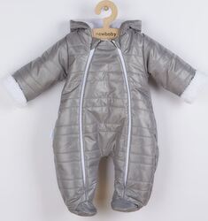 Zips je po celej dĺžke podšitý látkou, a tým je zamedzené prefukovaniu vetra na pokožku bábätka. Kombinéza má praktickú kapucňu, širšie pružné lemy na rukách a nohavičkách a celá vnútorná strana je zateplená nakrátko strihaným polarom, ktorý zvyšuje komfort nosenia a zaisťuje teplo.