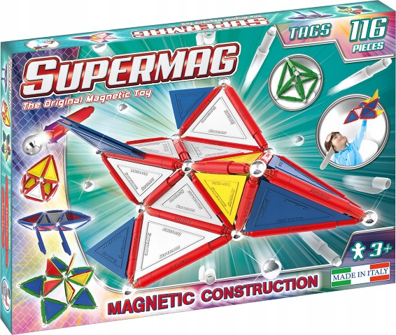 Magnetické kreatívne hračky Supermag Primary 116 – stavebnica, ktorá deti poháňa k tvorbe 3D modelov spájaním magnetických prvkov. Hra rozvíja koordináciu, predstavivosť a priestorové myslenie, pričom umožňuje neustále nové variácie konštrukcií.