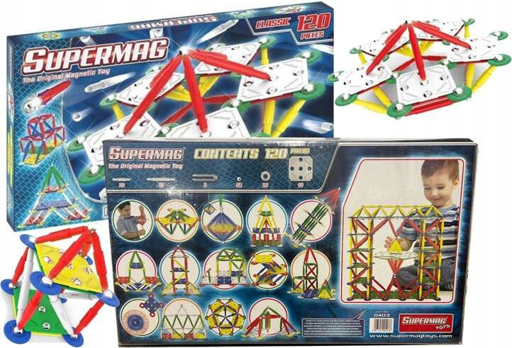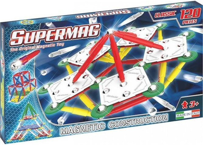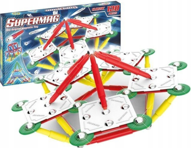 Magnetická stavebnica Supermag Classic Primary 120 obsahuje 120 magnetických dielikov v základných farbách, ktoré umožňujú deťom stavať rôzne forme a štruktúry pomocou magnetických spojok. Ideálna na kreatívne stavanie a rozvíjanie priestorového myslenia.