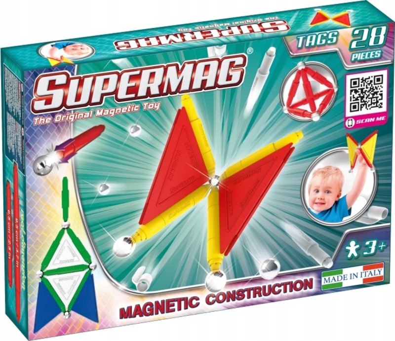 Magnetické kreatívne hračky Supermag Primary 28 – sada 28 magnetických prvkov, ktoré deťom umožňujú stavať rozmanité konštrukcie pomocou magnetických tyčiek a spojov. Stavebnica podporuje kreativitu, priestorové myslenie a jemnú motoriku.
