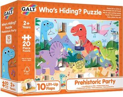 Tieto puzzle prináša zábavné scény s dinosaurami s otváracími okienkami, ktoré deťom umožňujú preskúmať, čo sa pod nimi skrýva.
