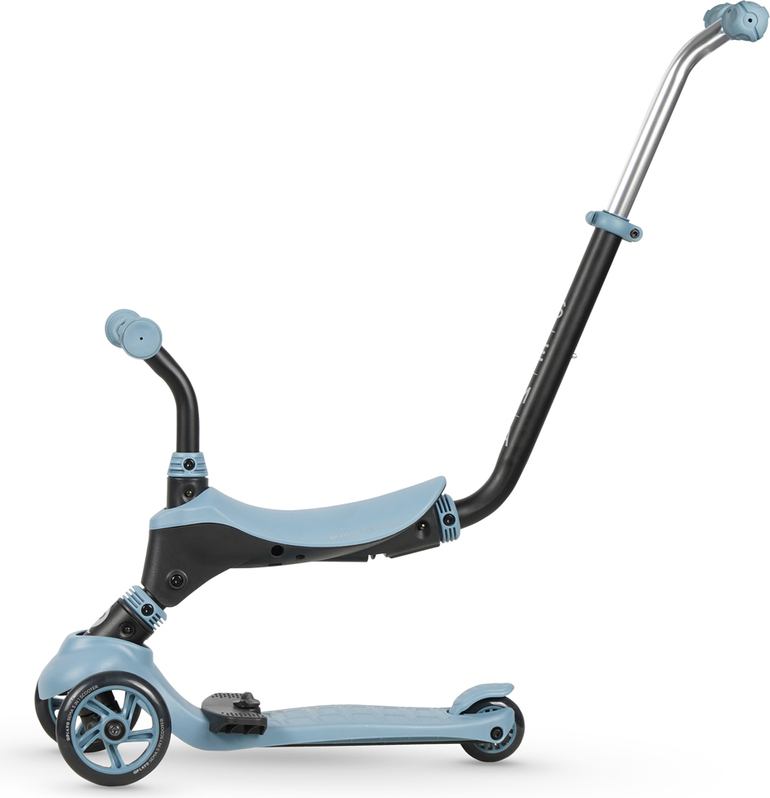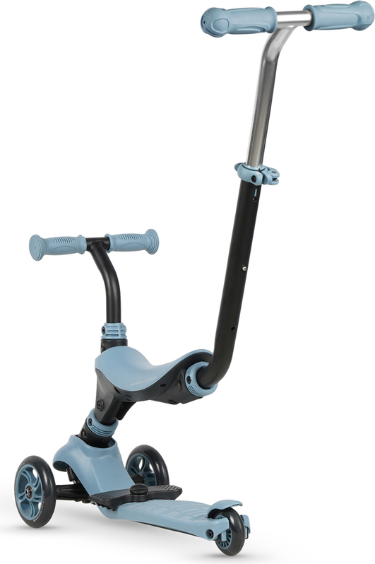 - Riadidlá a sedlo rodiča sú odnímateľné a môžu sa používať ako normálna kolobežka pre deti do 50 kg
