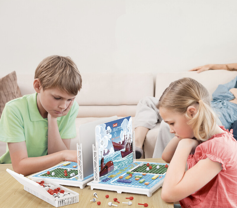 Klasická dosková hra pre 2 hráčov od 6 rokov. Cieľom je poraziť nepriateľskú flotilu tým, že uhádnete pozície lodí v mriežke, ktorá nie je pre súpera viditeľná.