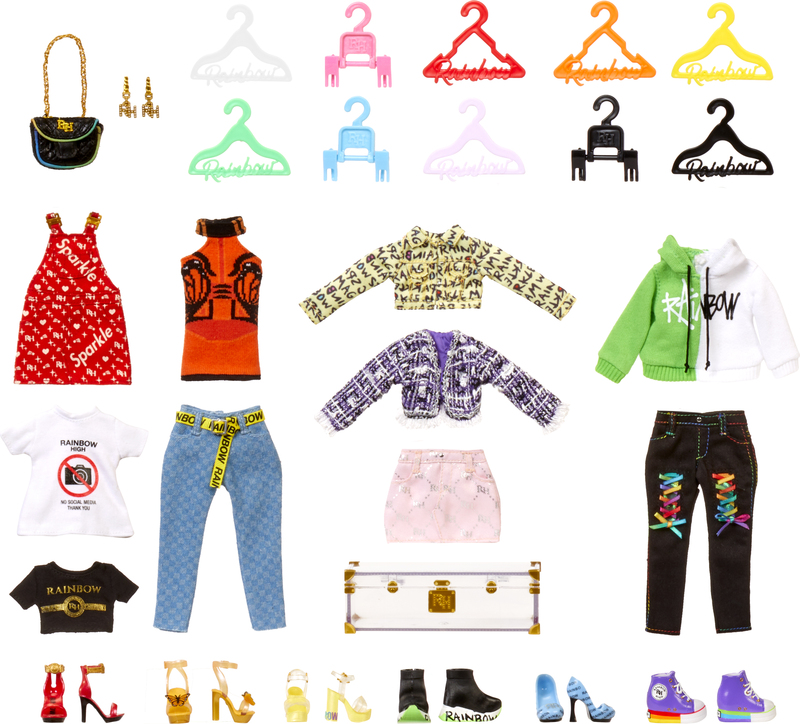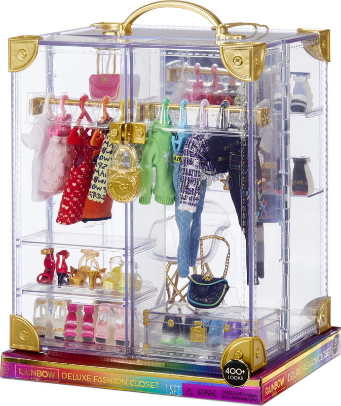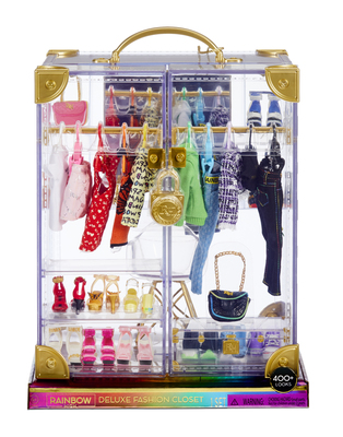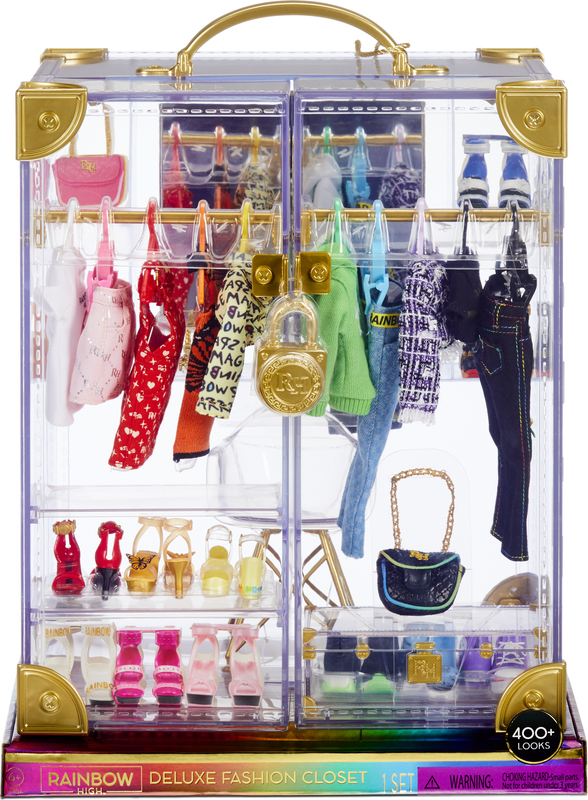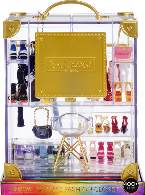 Luxusný šatník pre Rainbow High Fashion bábiky je tu! Užite si nekonečné hodiny obliekania a štylovania vašich bábik s viac ako 20 outfitmi a množstvom doplnkov. Môžete vytvoriť viac ako 400 módnych kombinácií. Nie je to len obyčajná skrinka, je to krásna luxusná šatňa, kde nájdete aj zrkadlo a nádhernú stoličku. Luxusný šatník si môžete vziať aj so sebou niekam na cesty.