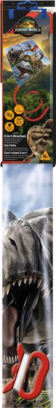 Zažite zábavu s lietajúcim šarkanom inšpirovaným Jurským svetom. Vyrobený z odolného ripstop polyesteru, ponúka variabilné použitie 2 v 1 s jedným alebo dvoma vodiacimi šnúrami.
