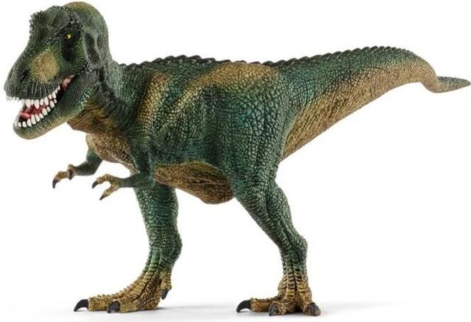 - Tyrannosaurus Rex bol až 13 metrov dlhý. Bol to dravý, mocný dinosaurus. Ak prišiel o zub, ďalší mu narástol v priebehu niekoľkých týždňov. Pohyboval sa na dvoch nohách. Svoje predné nohy veľmi nevyužíval. Mal na nich len dva pazúry a nedokázal sa nimi dotknúť ani svojich úst. Vysoký bol okolo 7 metrov. Nebol to skúsený lovec. Živil sa zdochlinami, ktoré nachádzal po ostatných zvieratách. Tyrannosaurus Rex mal 15 cm dlhé zuby a bolo ich viac ako 50. Zuby slúžili na trhanie, potravu prehĺtal po veľkých kusoch. Táto figúrka má pohyblivú čeľusť.