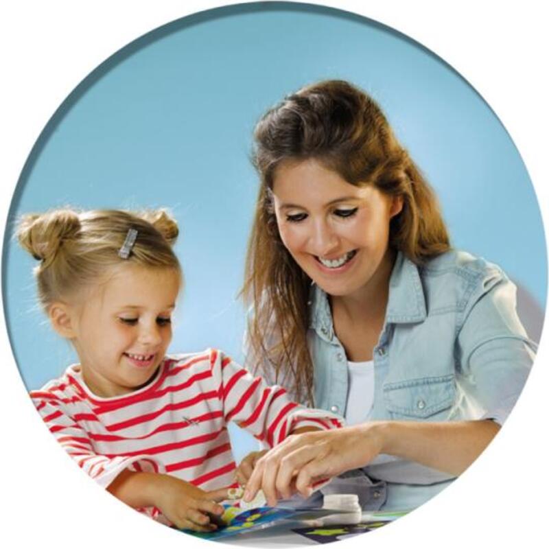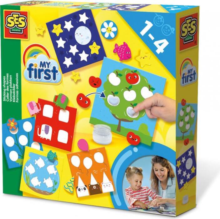 Kam patrí jabĺčko? Na strom! A hviezdy? Na oblohu!Pomocou prstíkov nanes lepidlo na kartičky a prilep správny tvar. Nauč sa hravou cestou rozpoznávať tvary a trénovať jemné motorické zručnosti. Lepidlo je ľahko vyprateľné.