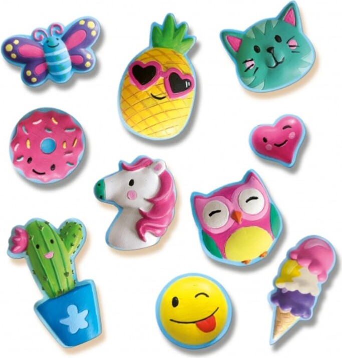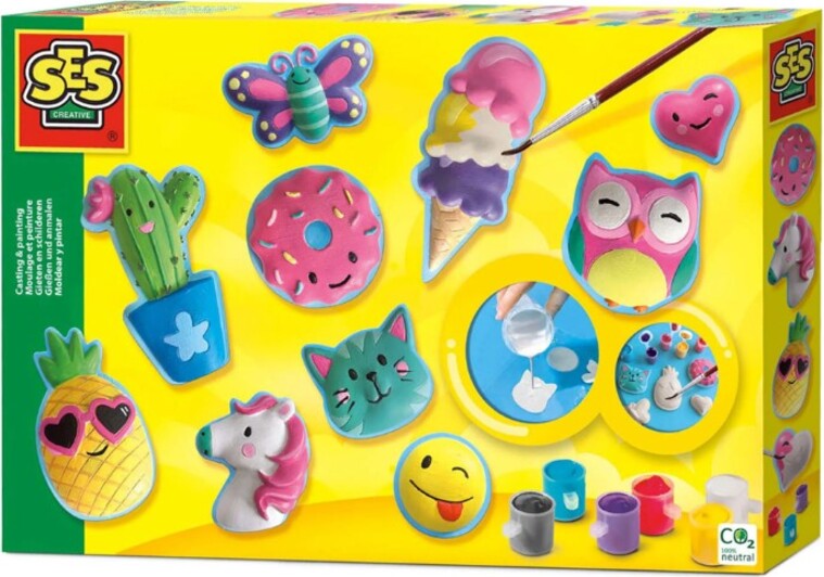 Baví vás aj odlievanie zo sadry? S touto sadou od SES Creative si ľahko vytvoríte rôzne veselé postavičky, napríklad jednorožca, smajlíka, sovu a motýľa. Do formy nalejte sadru a nechajte ju stuhnúť. Potom postavičku namaľujte krásnymi módnymi farbami. Je to zábava a výsledok je skvelý