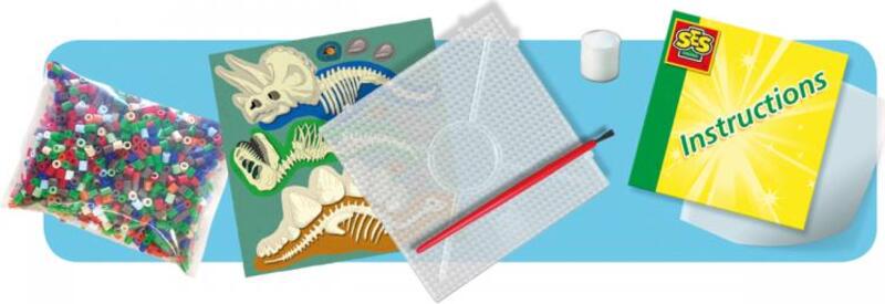 Milujte dinosaurov? Potom je táto sada SES so zažehľovacími korálkami - dinosaury stvorená pre vás. Vytvorte T-Rexa, Triceratops alebo brachiosaura. Vyskladajte na podložku korálky, ktoré sa vám páčia. Nechajte podložku prežehliť dospelého a potom nalepte kostru dinosaura. Vyrábať môžete aj 3D dinosaurov. Zažehľovacie korálky SES Creative neobsahujú PVC a sú vysoko kvalitné. So zažehľovacími korálkami si užijete hodiny zábavy.