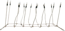 Jeho konce sú opatrené kovovými prievlakmi, s pomocou ktorých je zavesenie veľmi jednoduché a variabilné.
