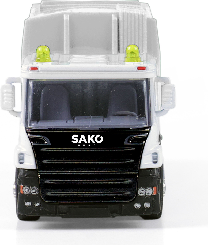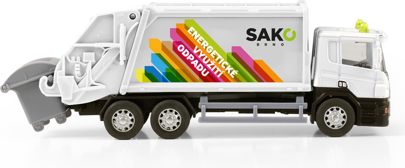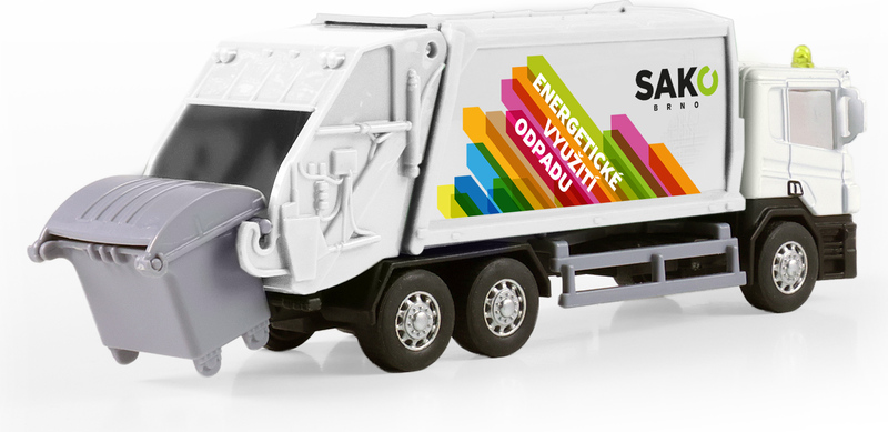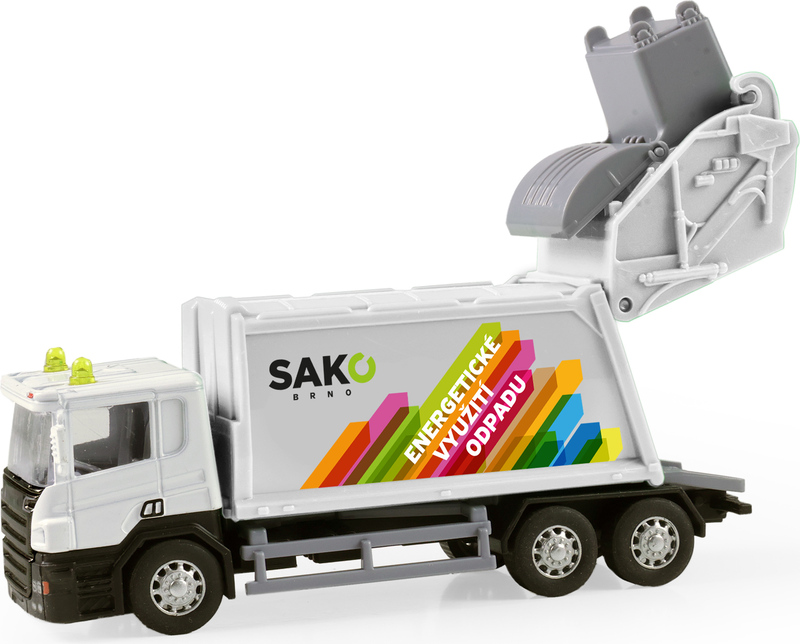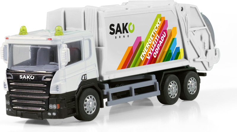 Kovové smetiarske auto s plastovou korbou a logom SAKO.