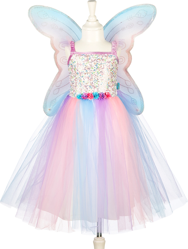Očarujúce kostým Felicity s motýlími krídlami premení každú malú slečnu na vílu z rozprávok. Šaty majú klasický strih s ramienkami a elastický pás. Šaty v nežných pastelových tónoch sú starostlivo spracované, pohodlné a ľahko sa obliekajú cez hlavu.