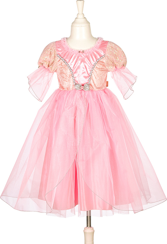 Princezná Annerosa je nadšená, dostala totiž nové šaty na nadchádzajúci ples! A nie sú to len tak hocijaké šaty. Tieto ružové šaty sú ako stvorené pre skutočné princezné. Upútajú jemným leskom, bohatou tylovou sukňou, krásne zdobeným živôtikom a trblietavými detailmi. Nadýchané rukávy a elegantná mašľa v páse dopĺňajú celkový rozprávkový vzhľad. Dokonale spracovaný kostým poteší každú malú princeznú a premení bežný deň na rozprávkový.