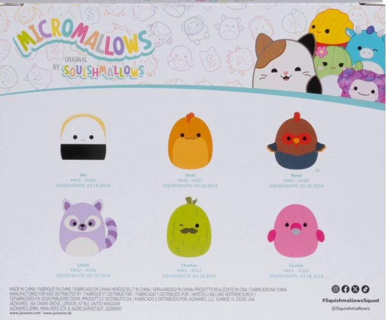 Predstavujeme vám rozkošnú kolekciu SQUISHMALLOWS Micromallows, ktorá vám prináša vaše obľúbené postavičky v miniatúrnej verzii - približne 6 cm! Toto balenie obsahuje 6 zábavných a plyšových Micromallows.