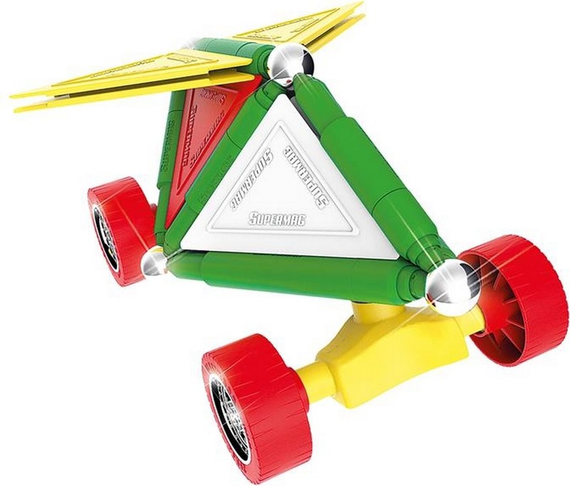 Magnetická stavebnice Supermag Tags Wheels 50 obsahuje 50 dielov vrátane špeciálnych kolies, ktoré umožňujú deťom vytvárať nielen statické modely, ale aj pohyblivé vozidlá. Stavebnica rozvíja predstavivosť, kreativitu a technické myslenie.
