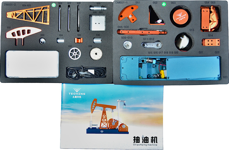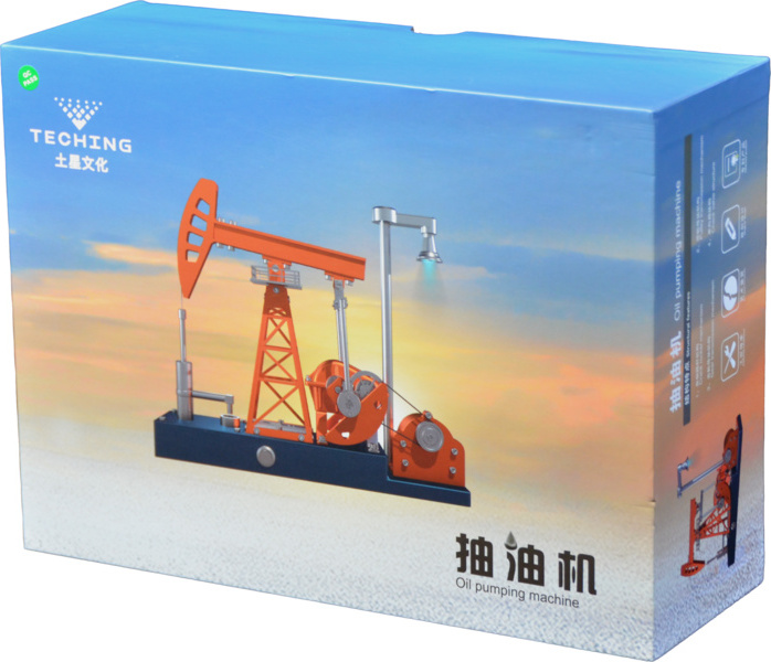 Stavebnica precízneho kovového modelu Teching - ropná ťažobná pumpa. Funkčná maketa demonštrujúca mechanizmus vyčerpávania ropy z vrtu. Model ponúka realistické mechanické funkcie - pohyb ojnice a vahadla, prečerpávanie kvapaliny. Vďaka akumulátoru, elektronike a elektromotoru model ožíva. Rotačný pohyb motora je prenášaný na ojnicu a ďalej na vahadlo, ktoré zdvíha pumpu a umožňuje reálne čerpanie kvapaliny. V makete lampy je umiestnená LED dióda, ktorá osvetľuje model. Stavebnica je navrhnutá tak, aby už samotné zostavovanie bolo zážitkom. Vďaka vysoko kvalitnému spracovaniu a viditeľnej funkčnosti jednotlivých častí je model vhodný ako výstavný a reprezentatívny solitér alebo ako učebná pomôcka. Model ocenia študenti, nadšenci do techniky a zberatelia. Ide o originálny návrh a výrobu značky Teching s presne opracovanými kovovými dielmi, obrazovým návodom pre jednoduché zostavenie a v prémiovom balení.
