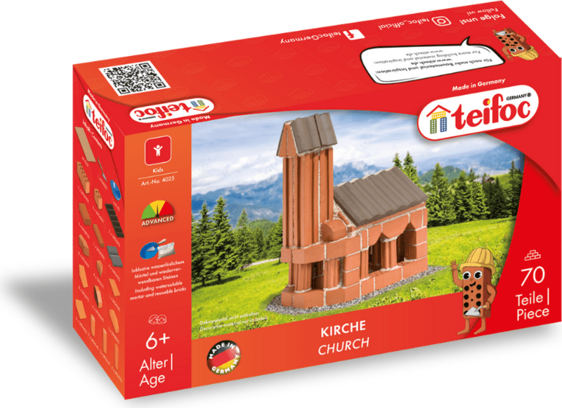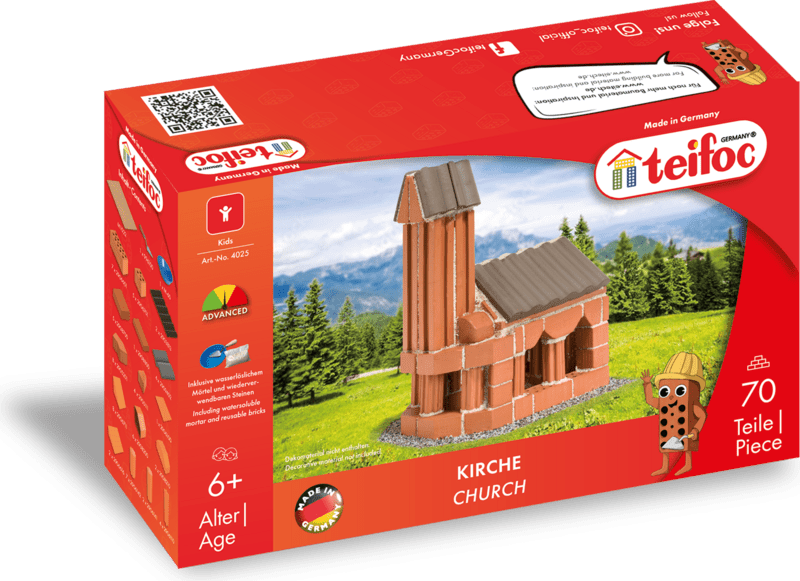Staň sa malým staviteľom a postav si vlastný kostolík z 70 pravých pálených tehál! Táto stavebnica je ideálna pre deti od 6 rokov, ktoré sa chcú naučiť základy stavebnej techniky a zároveň sa zabaviť pri stavaní. Balenie obsahuje všetko potrebné – od tehál cez malú lyžicu na maltu až po ilustrovaný návod. Všetky materiály sú 100?% prírodné, čo zaručuje bezpečnosť pri hraní.