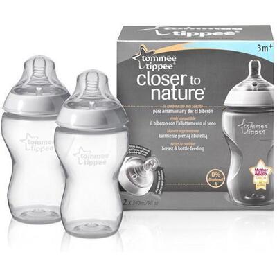 Rad C2N Tommee Tippee bez Bisfenol A. Cumlík pripomína svojím tvarom a vlastnosťami materský prsník. Teplá tekutina zahreje cumlík na príjemnú teplotu a tiež mäkký koniec cumlíka pripomína materskú bradavku, takže dieťatko nepociťuje rozdiel medzi dojčením a kŕmením z tejto špeciálne navrhnutej fľaše. Fľaštička je antikolikové opatrená malým ventilačným otvorom na okraji cumlíka, ktorý citlivo zabezpečí únik vzduchu z fľaše a umožní plynulé satie tekutiny a zároveň znižuje riziko brušnej koliky.