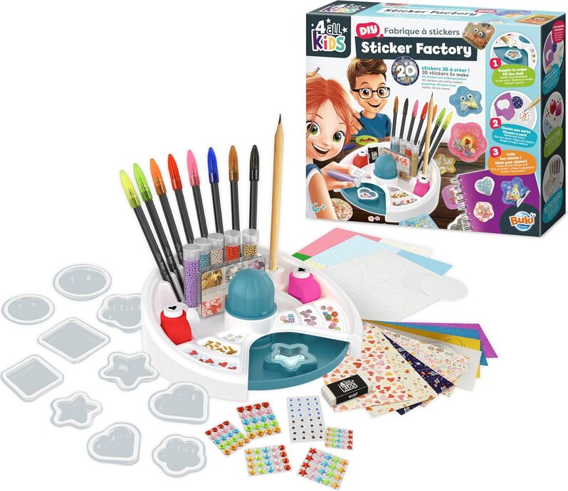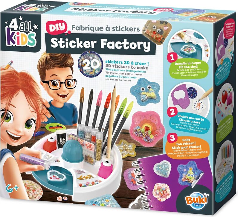 Vytvorte si vlastné 3D samolepky! Kreatívna súprava umožní deťom vyrobiť až 20 originálnych samolepiek plných farieb, trblietok a fantázie.