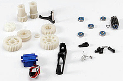 Súprava dvojstupňovej prevodovky pre model E-Revo 1:10. Sada obsahuje všetky potrebné diely na prestavbu vrátane serva. Na sprevádzkovanie potrebujete iba voľný kanál, pomocou ktorého budete riadiť servo prevodovky.