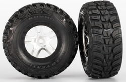 Kompletné univerzálne kolesá pre RC auto Traxxas Slayer. Saténové disky s čiernymi ráfikmi Bed Lock s nalepenými pneumatikami Kumho z ultra mäkkej zmesi (S1) a vložkou.