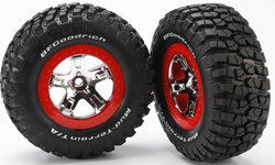 Kompletné predné kolesá pre 2WD autá Traxxas Slash. Chrómované disky s červenými ráfikmi a nalepenými pneumatikami BFGoodrich® s vložkou